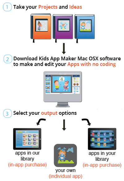 With "Kids App Maker" you can enhance your text, pictures and sound content with the robust and fun features described bellow. In just a few days you can get your design and production team testing and making their first interactive apps for the next generation.